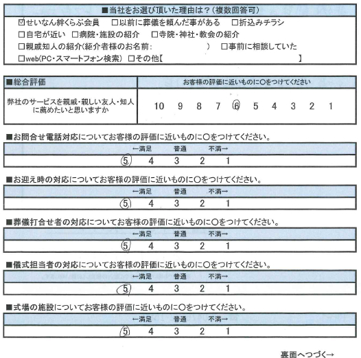 また、初めてのご経験であった納棺式につきましても「とても良かった」と感じていただけたこと、大変嬉しく思います。
