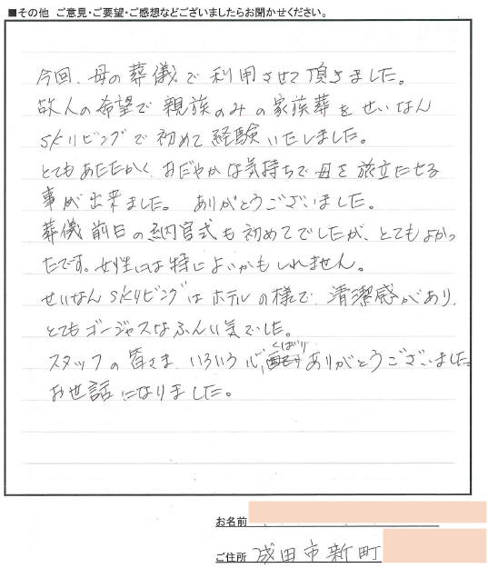 令和8年1月 お客さまの声 | 成田・富里・八街の葬儀・家族葬なら「せいなん」