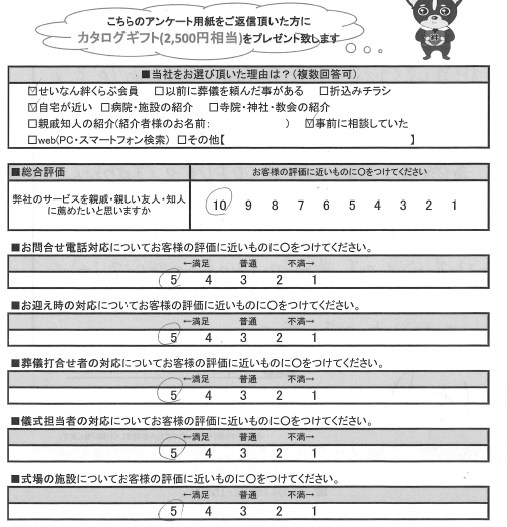 人生初の家族の葬儀でどこから何を始めて良いのか全くわからなく、死亡届け等の手続きも不明で、頭が真っ白になっていた時に、しっかりサポートしていただき火葬まで安心で終えられました。